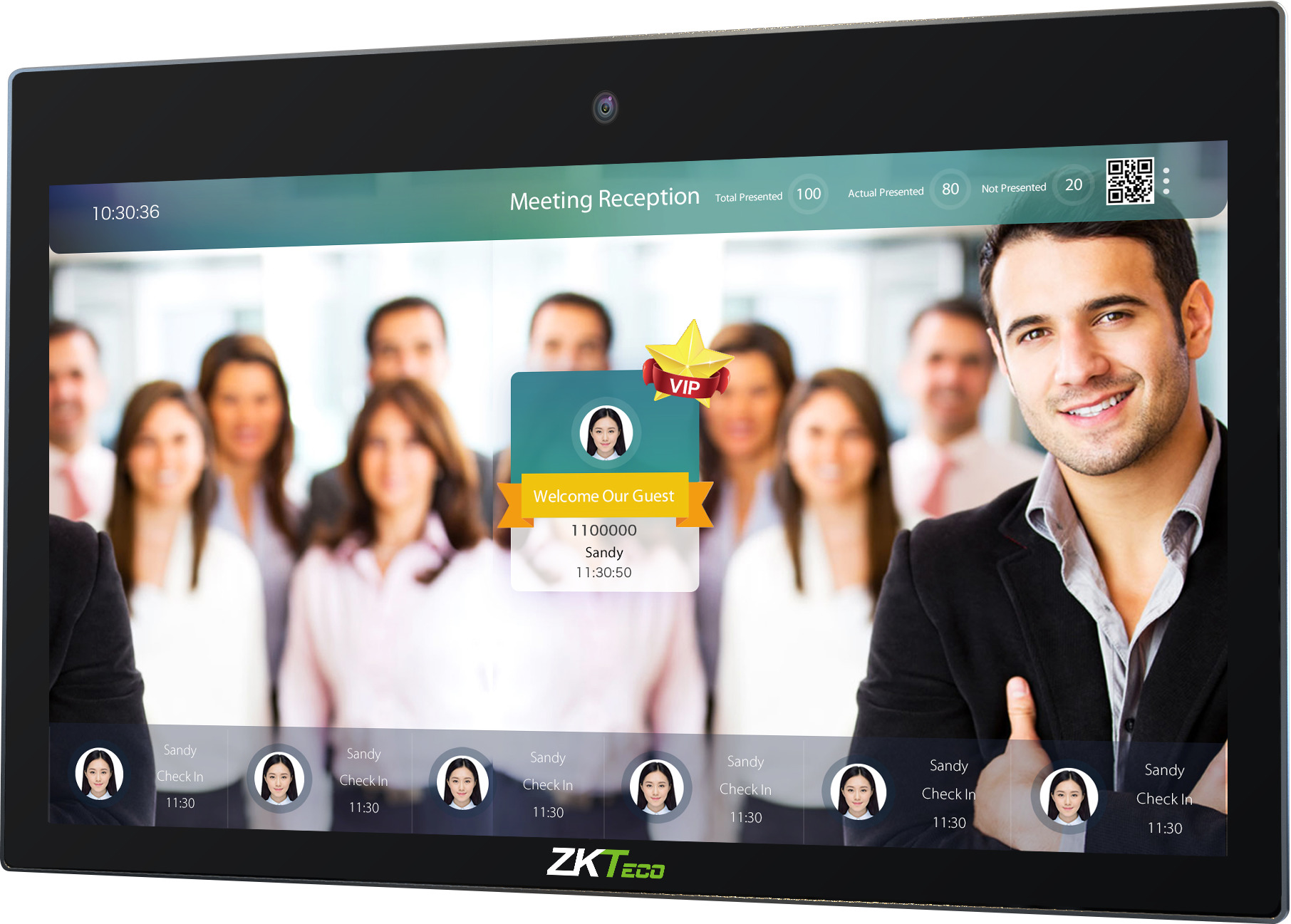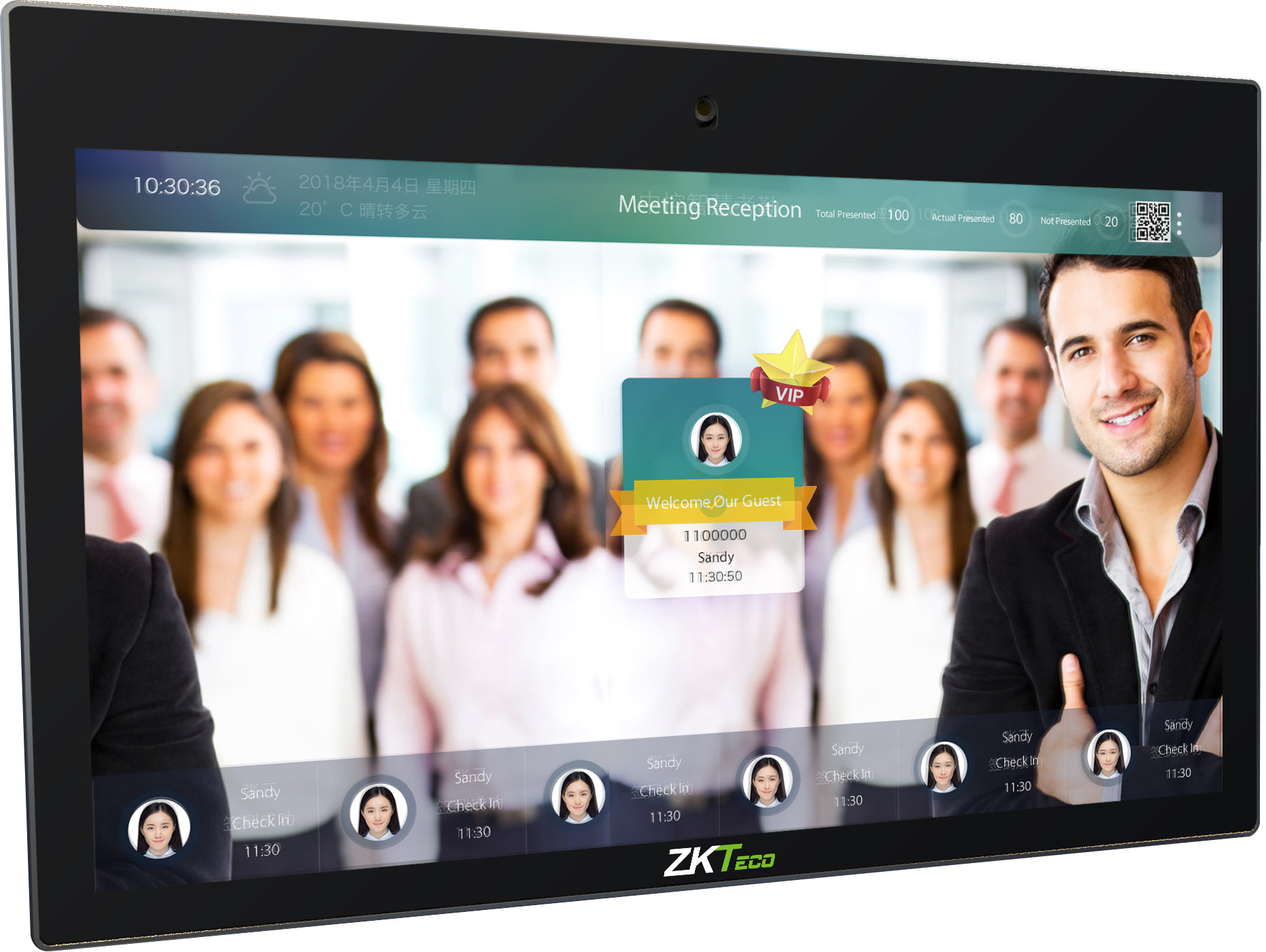 Многофункциональное интеллектуальное устройство для распознавания лиц с системой Android и 32-дюймовым сенсорным экраном в системах контроля доступа. Он прост в установке, дополнительно имеется возможность настенного монтажа. Его можно использовать для учета рабочего времени, контроля доступа, в качестве помощника при встречах, киоска самообслуживания и пр. Устройство также можно использовать в качестве рекламной панели с биометрическим анализом по возрасту, полу. Администратор может загрузить рекламные фото и видео с USB-накопителя.