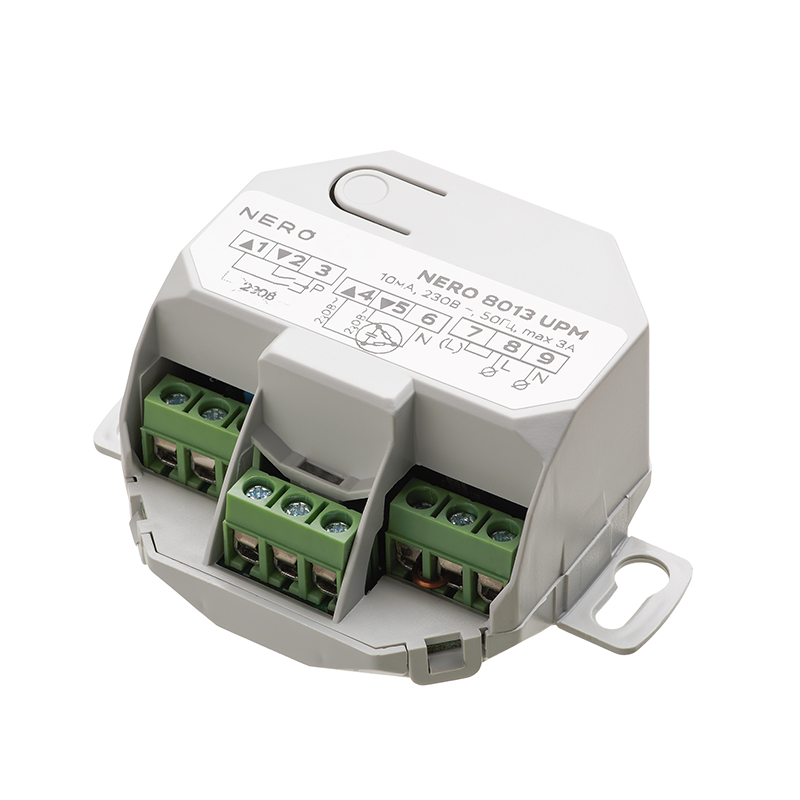 Одноканальный исполнитель команд, предназначенный для управления различными электрическими нагрузками в составе системы Nero: электроприводами роллет, рулонных штор, а также лампами накаливания и блоками автоматики ворот и шлагбаумов. Устройство имеет 3 режима работы: короткая для совместной работы с другими устройствами автоматики; роллетный режим для поднятия и опускания роллет; непрерывная команда для включения/выключения освещения, другой электрической нагрузки. Устройство прошло проверку и имеет все необходимые сертификаты для установки в России.