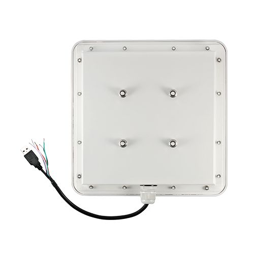 HF считыватель карт для дальней дистанции. Дальность считывания до 10 м (регулируется). Одновременное считывание до 50 карт. Интерфейсы: Wiegand 26/34, USB. Корпус антенны: пластик ABS; задняя сторона: алюминий. Питание DC 9-12 В, 1.2 A. Рабочая температура -20...+60 °C. Степень защиты IP65. Размеры 445x445x70 мм.