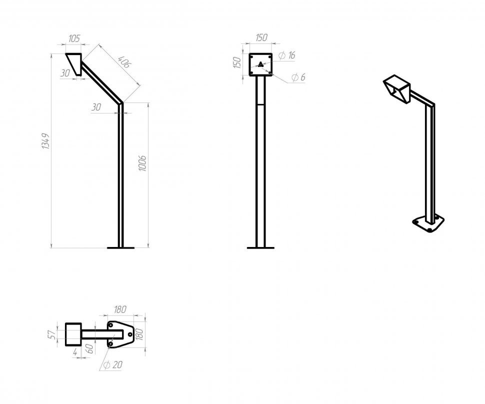 Комплектация: стойка в сборе, винты M4 для крепления считывателя (4 шт.), резиновые заглушки для неиспользуемых отверстий. Крепеж для пола приобретается отдельно.