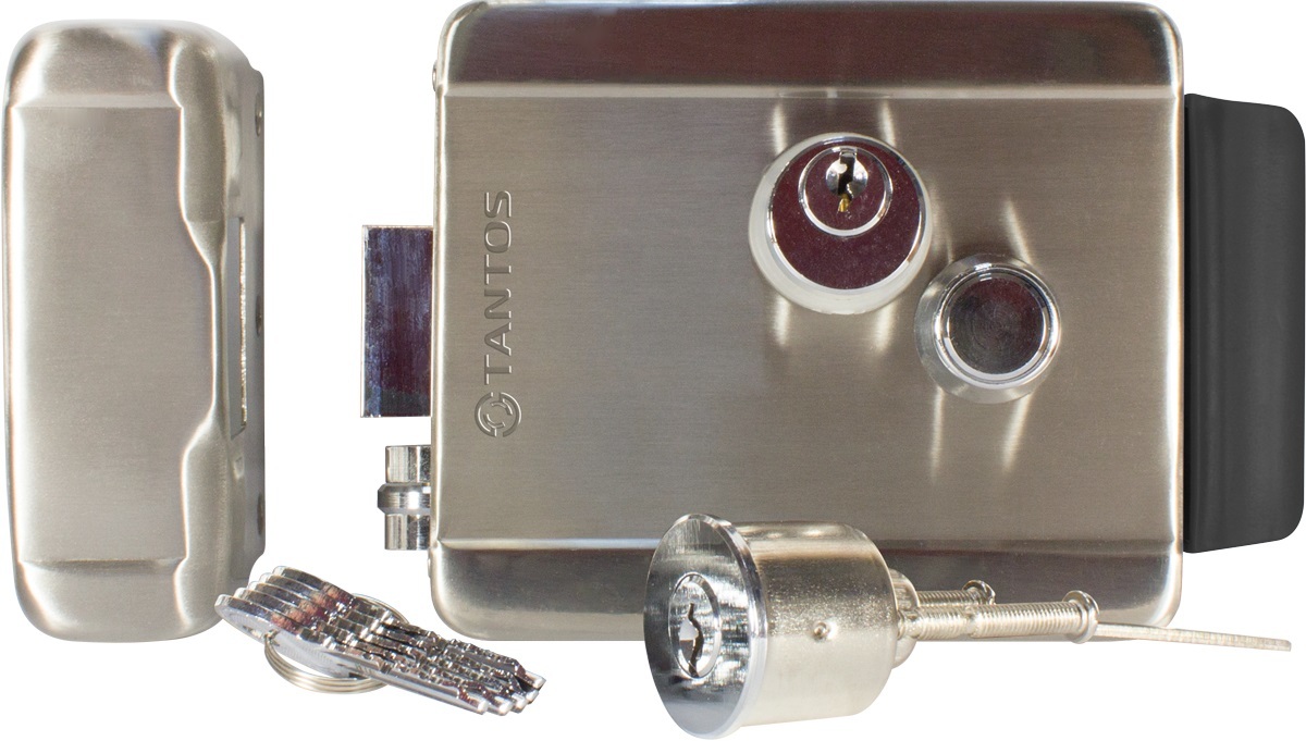 TANTOS TS-EL2369 Classic - замок электромеханический из нержавеющей стали, накладной, универсальный, с блокировкой кнопки в 2-х положениях. Предназнач