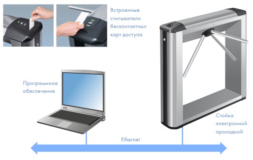 В качестве идентификаторов в электронной проходной могут использоваться как карты доступа, так и смартфоны с NFC-модулем, технология NFC используется для эмуляции бесконтактных карт.