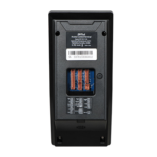Память RFID карт: 10 000; Интерфейс: Дверной замок, «тревожный» выход, AUX вход, кнопка выхода, дверной датчик, звонок; Питание: DC 12В < 500 mA; Алгоритм распознавания: ZKFace v7.0 и ZKFinger v10.0