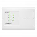В автономном режиме "Сигнал-10" представляет собой однокомпонентный приемно-контрольный охранный прибор и выполняет следующие функции: контролирует неадресные шлейфы сигнализации: тип 4: охранный тип 5: охранный с распознаванием нарушения блокировочного контакта извещателя тип 6: технологический тип 7: охранный входной тип 11: тревожный тип 12: программируемый технологический тип 17: водосигнальный управляет 2-мя релейными выходами без контроля подключаемых цепей управляет 2-мя ключевыми транзисторными выходами с контролем подключаемых цепей отображает состояние шлейфов сигнализации и сообщения о неисправности на 11 встроенных индикаторах поддерживает процедуру взятия/снятия шлейфов сигнализации с помощью электронных идентификаторов (ключей и карточек) через подключаемый внешний считыватель позволяет одновременно управлять группой своих шлейфов сигнализации позволяет сохранять в энергонезависимой памяти до 85 электронных идентификаторов и их полномочия по управления шлейфами сигнализации питается от одного или двух независимых внешних источников питания постоянного тока имеет датчик вскрытия корпуса В составе системы ИСО «Орион», совместно с сетевым контроллером (пультом контроля и управления «С2000М» либо компьютером с установленным ПО АРМ «Орион»), блок представляет собой совмещённый приёмно-контрольного прибор и прибор управления. Дополнительно к функциям в автономном режиме блок выполняет следующие функции: контролирует пожарные неадресные шлейфы сигнализации: тип 1: пожарный дымовой двухпороговый (с распознаванием сработки одного и двух извещателей в ШС); тип 2: пожарный комбинированный однопороговый (с возможностью подключения тепловых и дымовых извещателей); тип 3: пожарный тепловой двухпороговый; тип 16: пожарный ручной тип 18: пожарный пусковой контролирует пожарный адресно-пороговый шлейф сигнализации тип 14 с извещателями "ДИП-34ПА", "С2000-ИП-ПА", "ИПР 513-3ПА" поддерживает резервированный интерфейс RS-485 передает в ИСО «Орион» сообщения о событиях: состоянии шлейфов, попытках взятия шлейфов на охрану (снятия с охраны), аварийном режиме, неисправностях шлейфов, релейных выходов, питания и т.д. поддерживает централизованное управление своими выходами по событиям в ИСО «Орион»: тревогах в разделах охраны, разрешении/запрещении прохода в точках доступа и т.д. поддерживает процедуру взятия/снятия своих шлейфов сигнализации с помощью электронных идентификаторов (ключей и карточек) через любой считыватель в системе поддерживает процедуру взятия/снятия своих шлейфов сигнализации с помощью системных кнопочных клавиатур и с сетевого контроллера передает текущие значения сопротивлений шлейфов сигнализации с подключенными извещателями и сигнализаторами по запросу сетевого контроллера; имеет в энергонезависимой памяти буфер на 512 событий. В буфер сохраняются сообщения, которые не могут быть переданы сетевому контроллеру при отсутствии связи