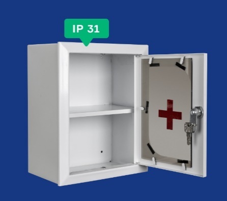 Аптечный шкаф MASTERMANN-2 IP 31 Габариты (внешние): 280х330х140 (ШхВхГ) Предназначен для использования в бытовых и производственных помещениях. Комплектация: замок 1 шт, ключ 1 шт, полка горизонтальная 1шт. Вес: 2,5 кг Цвет белый