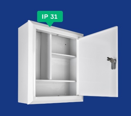 Аптечный шкаф MASTERMANN-3 IP 31 Габариты (внешние): 350х400х140 (ШхВхГ) Предназначен для использования в бытовых и производственных помещениях. Комплектация: замок 1 шт, ключ 1 шт, полка горизонтальная 2 шт. с разделителем. Вес: 3 кг Цвет белый