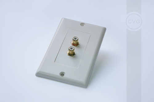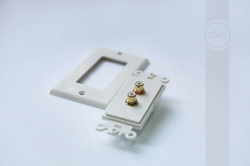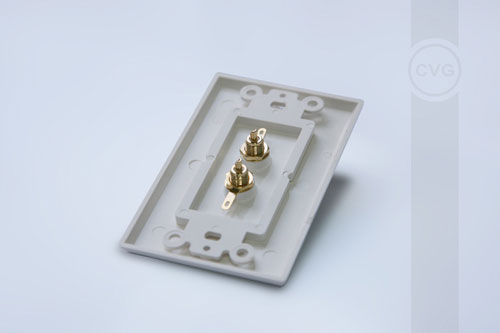 CVGaudio WLP02-R – декоративная розетка для подключения сигнального двухканального кабеля с разъемами 2RCA. Данную розетку можно использовать как для звукового линейного аудио сигнала (один стерео или два моно), так и для композитного (CVBS) видео сигнала. На лицевой декоративной панеле располагаются разъемы 2RCA(m). Разъемы металлические с позолотой, имеется красно – белая маркировка правого и левого каналов. Задняя сторона выполнена под пайку. Декоративная накладная панель в которую вмонтированы разъемы изготовлена из белого, стойкого к выгоранию ABS пластика. CVGaudio WLP02-R имеет в комплекте все необходимые крепления (саморезы и винты) для установки на стену. Возможна установка как в стандартный подрозетник американского стандарта (прямоугольный), так и непосредственно на стену. Настенную акустическую розетку CVGaudio WLP02-R можно использовать как в профессиональных инсталляциях, так и для подключения линейного звукового сигнала в частных домашних кинотеатрах и стерео системах (например для подключения активного сабвуфера). Кабельный вывод выглядит очень аккуратно и также позволяет при необходимости легко отключить устройство, например для уборки.