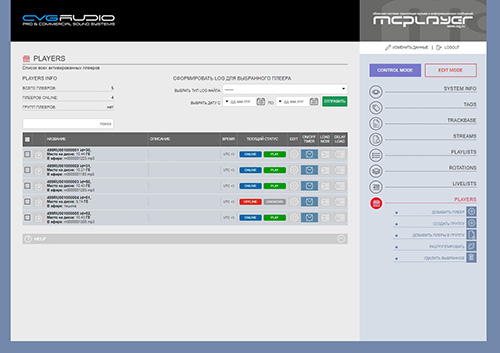 Если же у Вас несколько объектов и требуется удаленно мониторить и управлять воспроизведением (например, из центрального офиса), а также удаленно обновлять контент на плеерах, Вам подойдет второй вариант – облачный сервис MCplayer. В этом случае система может работать в полностью автоматическом режиме. Вы можете использовать таймеры на включение, отключение каждого плеера, запуск определенного трека или плейлиста и так далее. Генерация эфира происходит без участия оператора по единожды настроенному алгоритму. Система имеет огромное количество возможностей и настроек и все это управляется и мониторится удаленно через веб-браузер в Вашем личном кабинете Сервиса. Можно собирать отчеты о воспроизведении за день, загружать новые треки на один плеер, группу плееров или все сразу, создавать и загружать плейлисты и ротации (чередующиеся в заданном количестве плейлисты или треки), выводить в эфир рекламные блоки по таймеру или после заданного количества музыкальных треков и так далее. Также возможно приобретение усилителя MCplayer 12T для последующего использования совместно с программным обеспечением сторонних производителей.