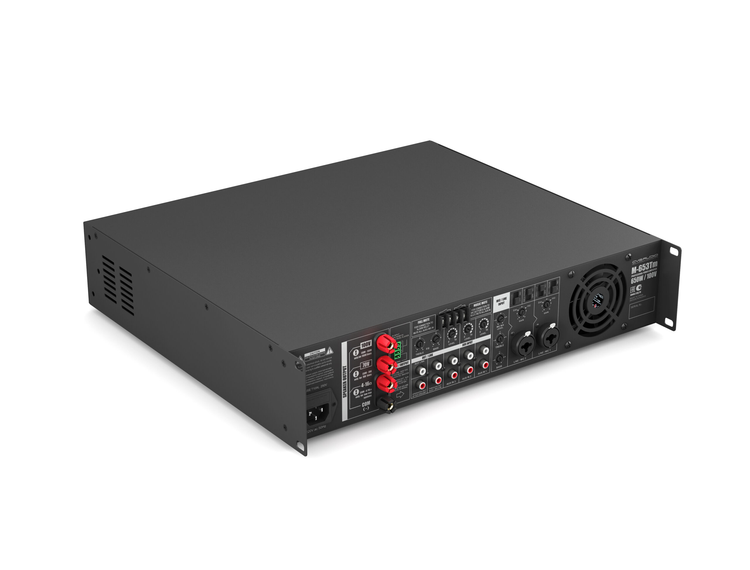 CVGaudio M-653Tm имеет все необходимые для подобных устройств системы защиты – защиту от перегрузки, перегрева, предохранитель по питанию, защиту от короткого замыкания. Усилитель имеет постоянное активное охлаждение. Благодаря использованию качественного вентилятора шум при работе усилителя минимален. Скорость вращения вентилятора зависит от температуры нагрева радиатора. Отличное качество звучания и продуманная до мелочей эргономика делают данную модель (как в прочем и все остальные усилители серии М) идеальным устройством для использования в составе качественных систем фонового звука, а высокое качество сборки и используемых электронных компонентов обеспечивают долгую и безупречную работу устройства в течении всего срока службы.