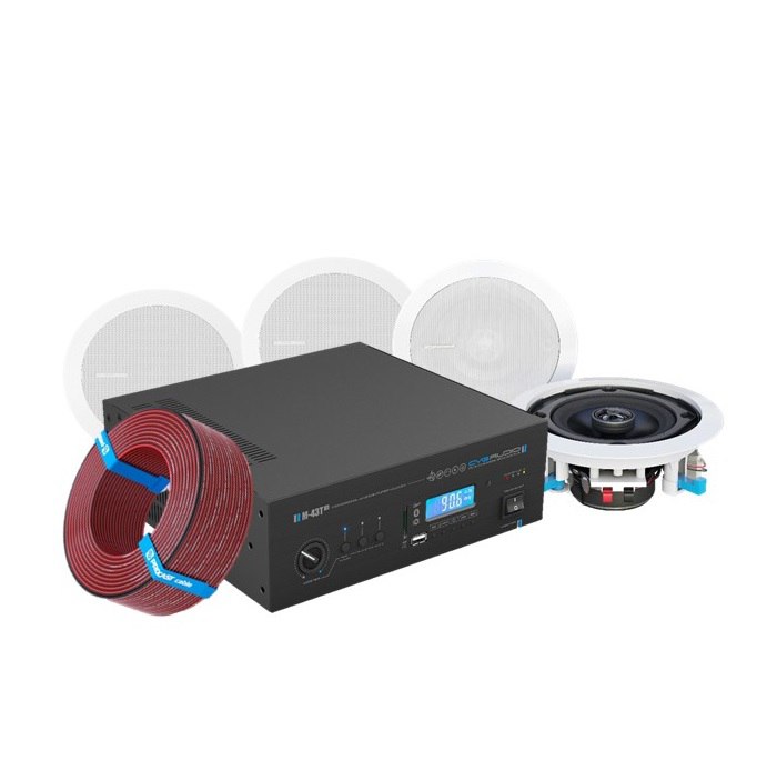 – комплект звукового оборудования и коммутации предназначен для помещений площадью до 50 m2 для создания качественной и функциональной системы фонового звука в различных коммерческих помещениях малого бизнеса. Рекомендуем для установки в различных магазинах, спа салонов, парикмахерских, небольших кафе и ресторанов, расположенных в Торговых центрах с требованием подключения к системе оповещения ТЦ.