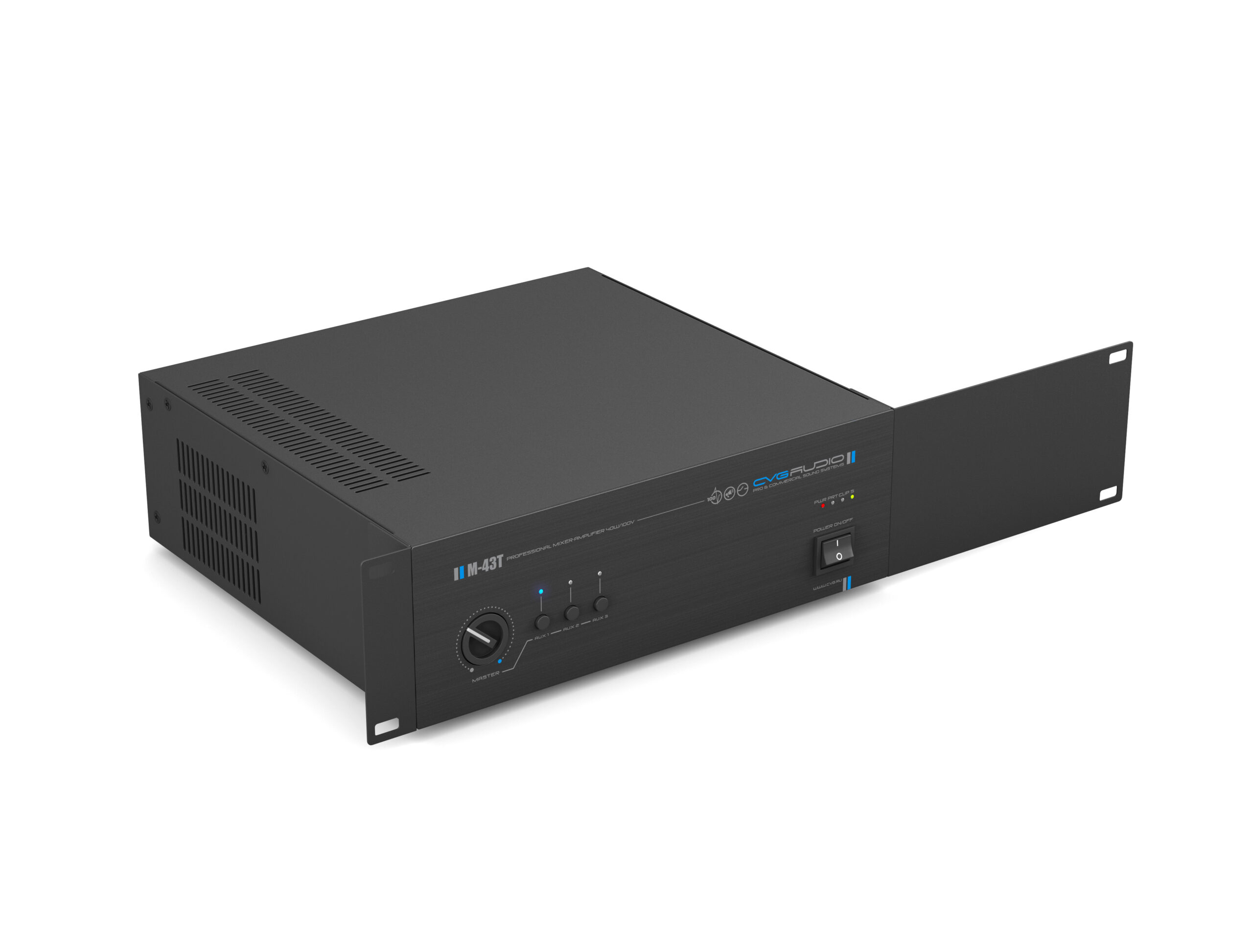Данная модель имеет актуальный пожарный сертификат и может использоваться в системах аварийно-пожарного оповещения. Усилитель выполнен в миниатюрном металлическом корпусе. Лицевая панель из алюминия. Для установки в монтажный шкаф потребуются опциональные кронштейны, в этом случае прибор при установке в стойку будет занимать высоту 2U. Основная масса элементов управления усилителя вынесено на заднюю панель, что ограничивает доступ к ним со стороны обслуживающего персонала. CVGaudio M-43T имеет все необходимые для подобных устройств системы защиты – защиту от перегрузки, перегрева, предохранитель по питанию, защиту от короткого замыкания. Усилитель имеет активное охлаждение и благодаря этому работает совершенно бесшумно.