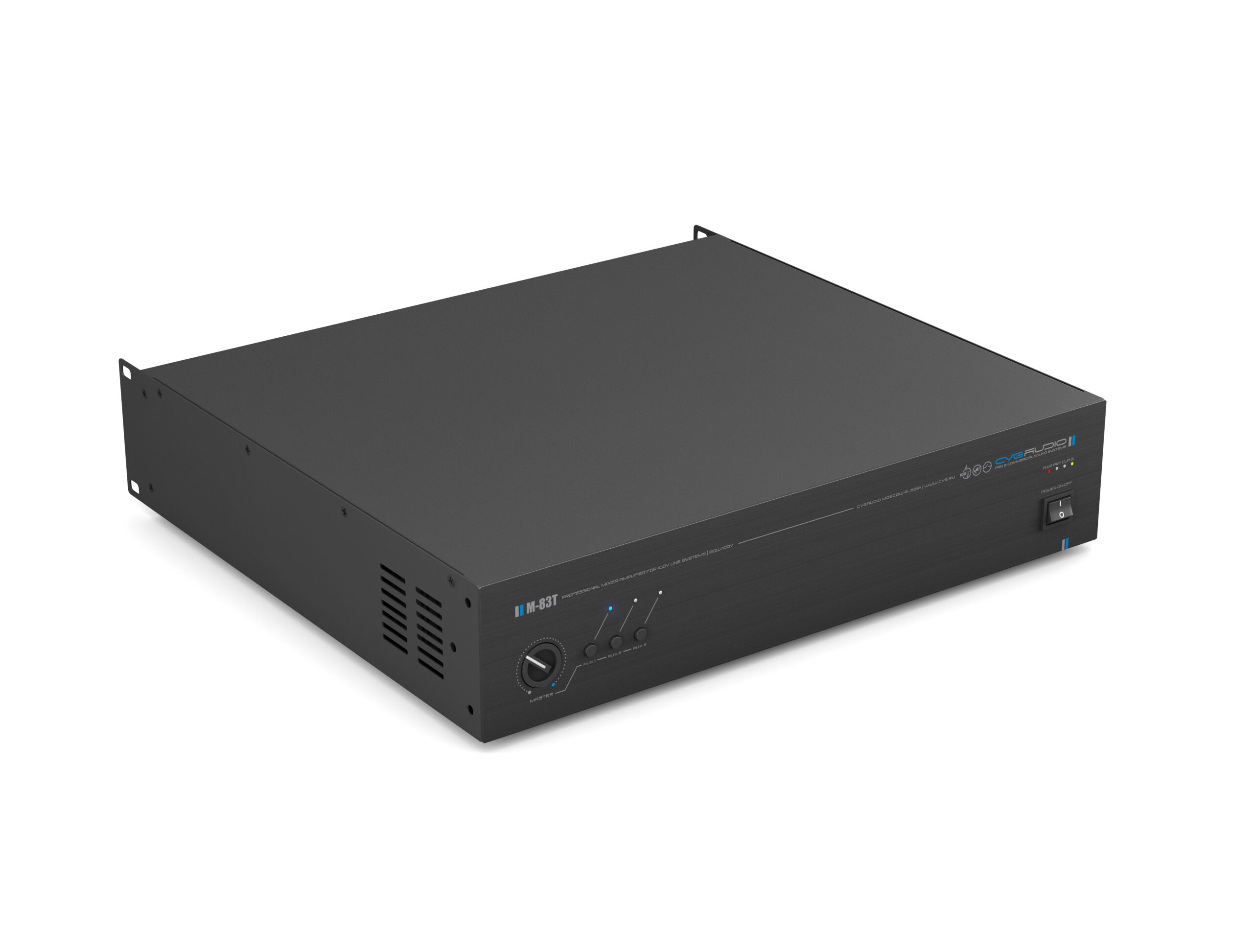 CVGaudio M-83T – профессиональный микшер – усилитель предназначенный для организации качественных систем трансляции фоновой музыки и речевого оповещения в торговых и общественных помещениях. Данная модель обеспечит отличное качество звучания и богатый функционал. Усилитель имеет мощность 80W и может работать как в трансформаторном 100V (основной режим работы), так и низкоомном 4-16ohm.