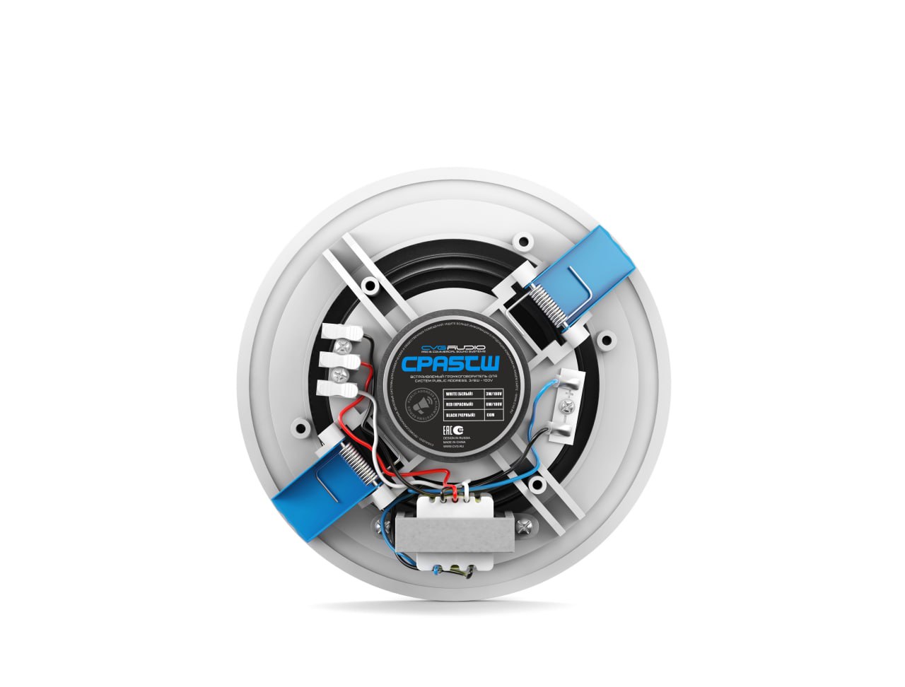 Встраиваемый 5" широкополосный громкоговоритель, 3/6W-100V, круглый, безрамочный, белый