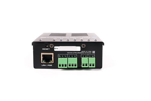 Программируемый контроллер управления, исполнительный модуль, RS232, RS485/DMX512, 2xRelay, IR in/out, 2xlogic in/out, 5хTCP-IP соединений, PoE/БП12V-1A