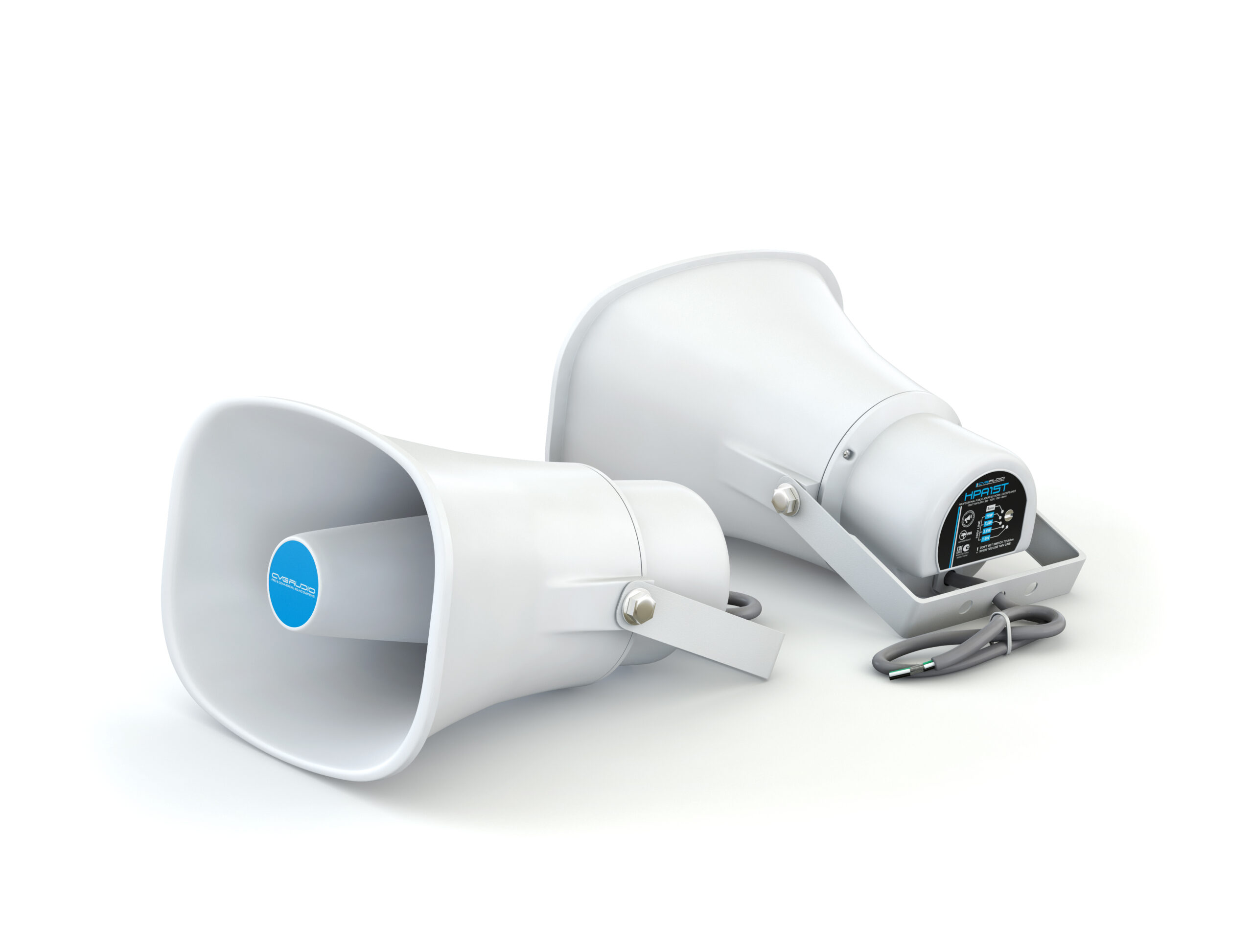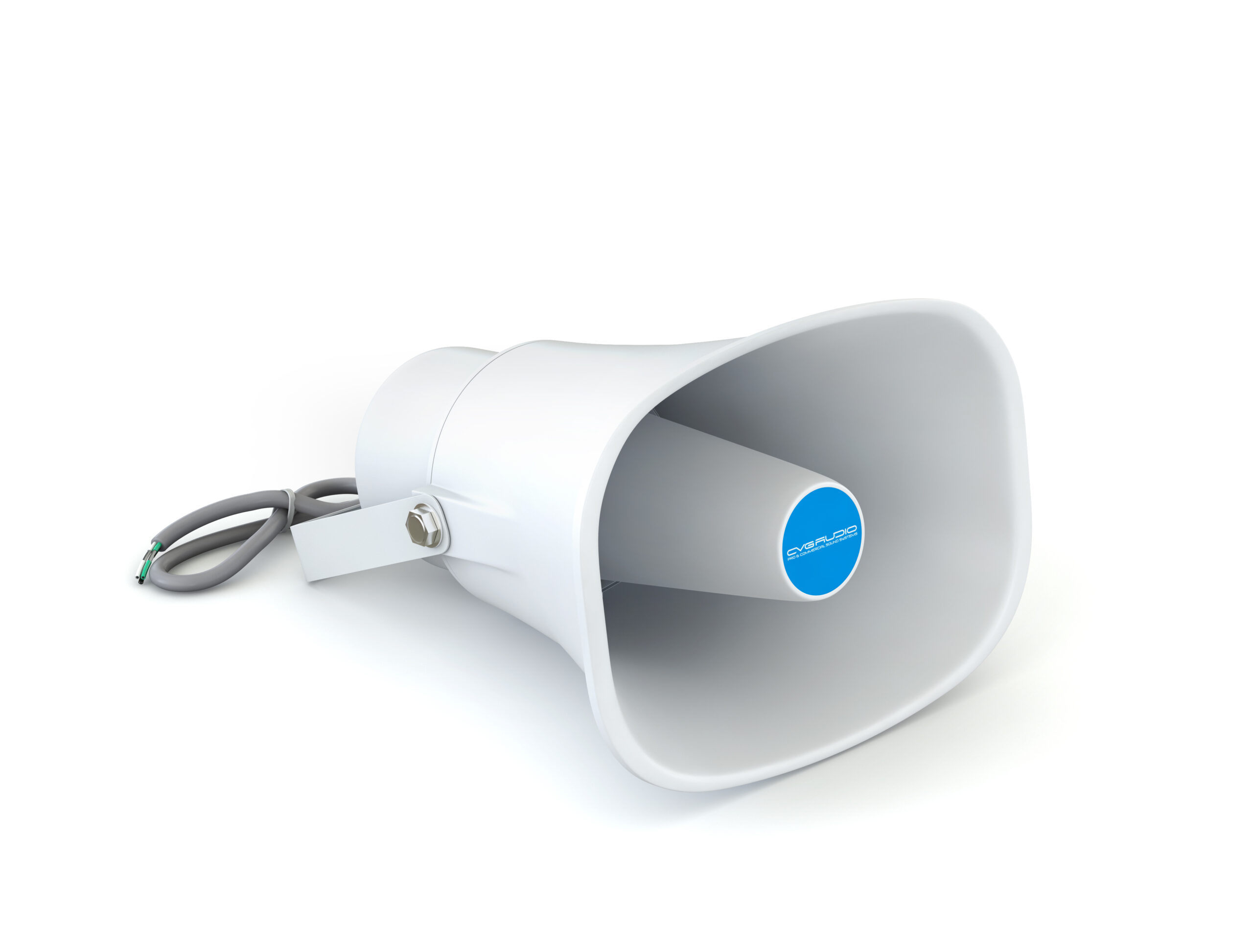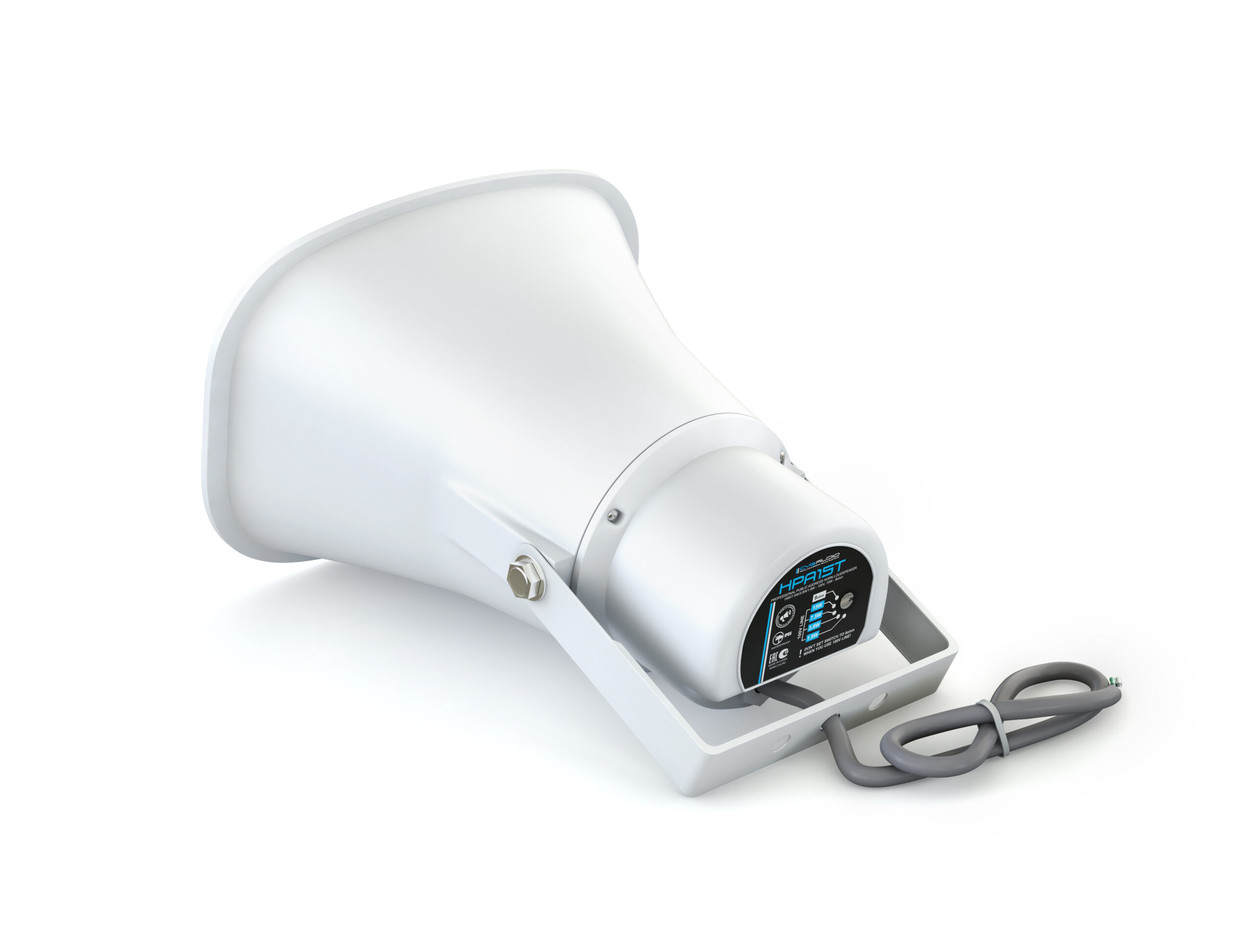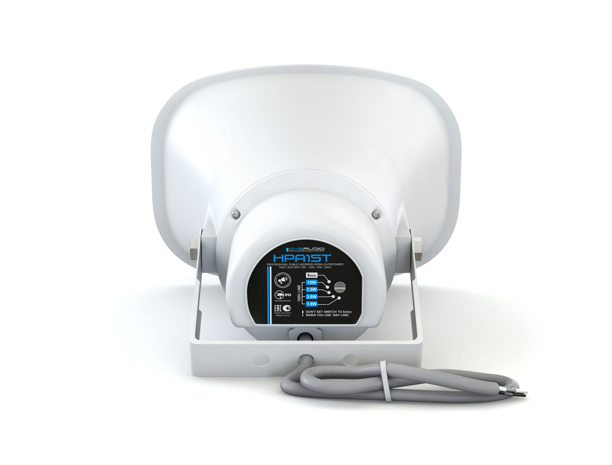 Рупорный громкоговоритель для систем Public Address, 1.9/3.8/7.5/15W — 100V, 8 Ohm - 15W, IP56, пластиковый корпус, белый