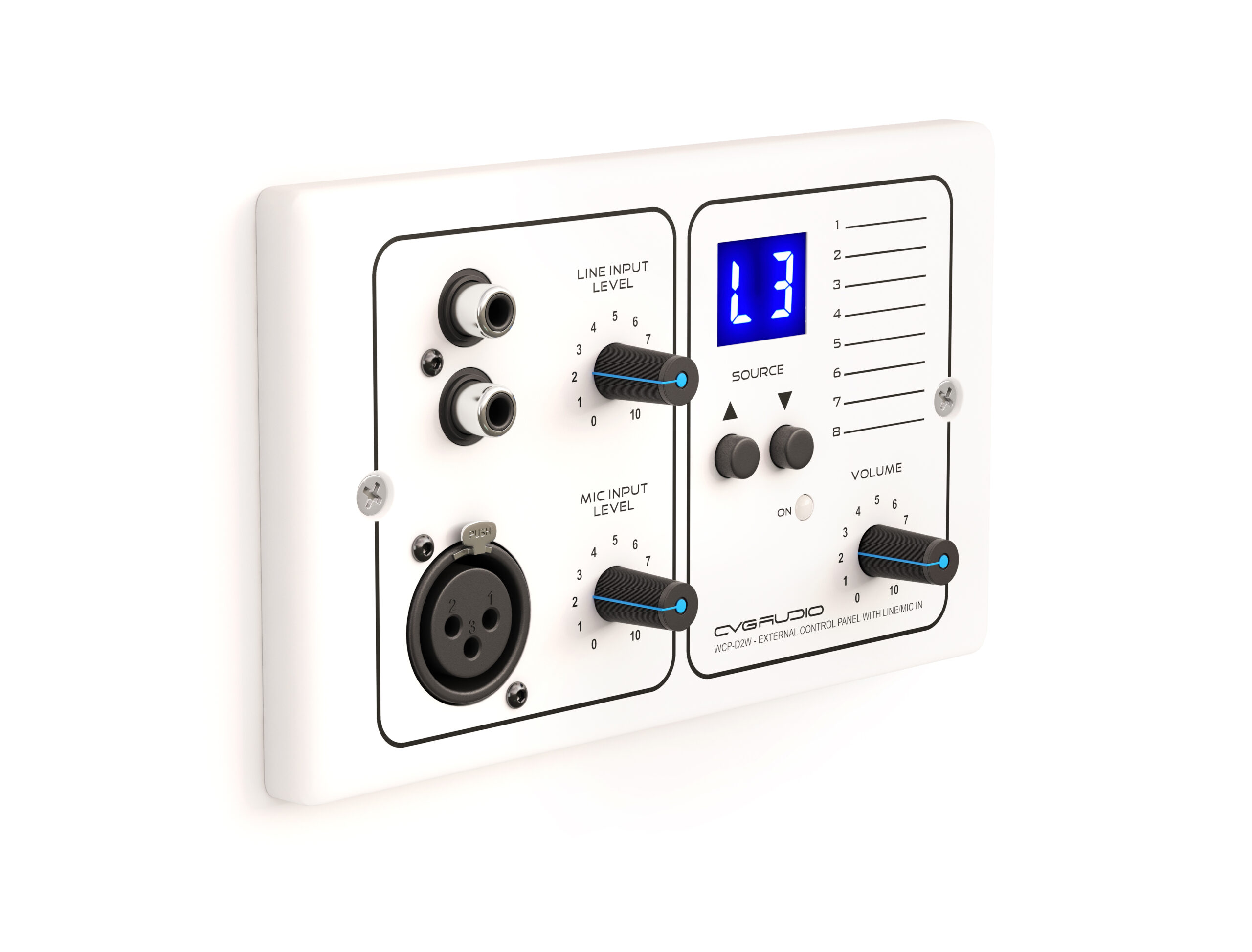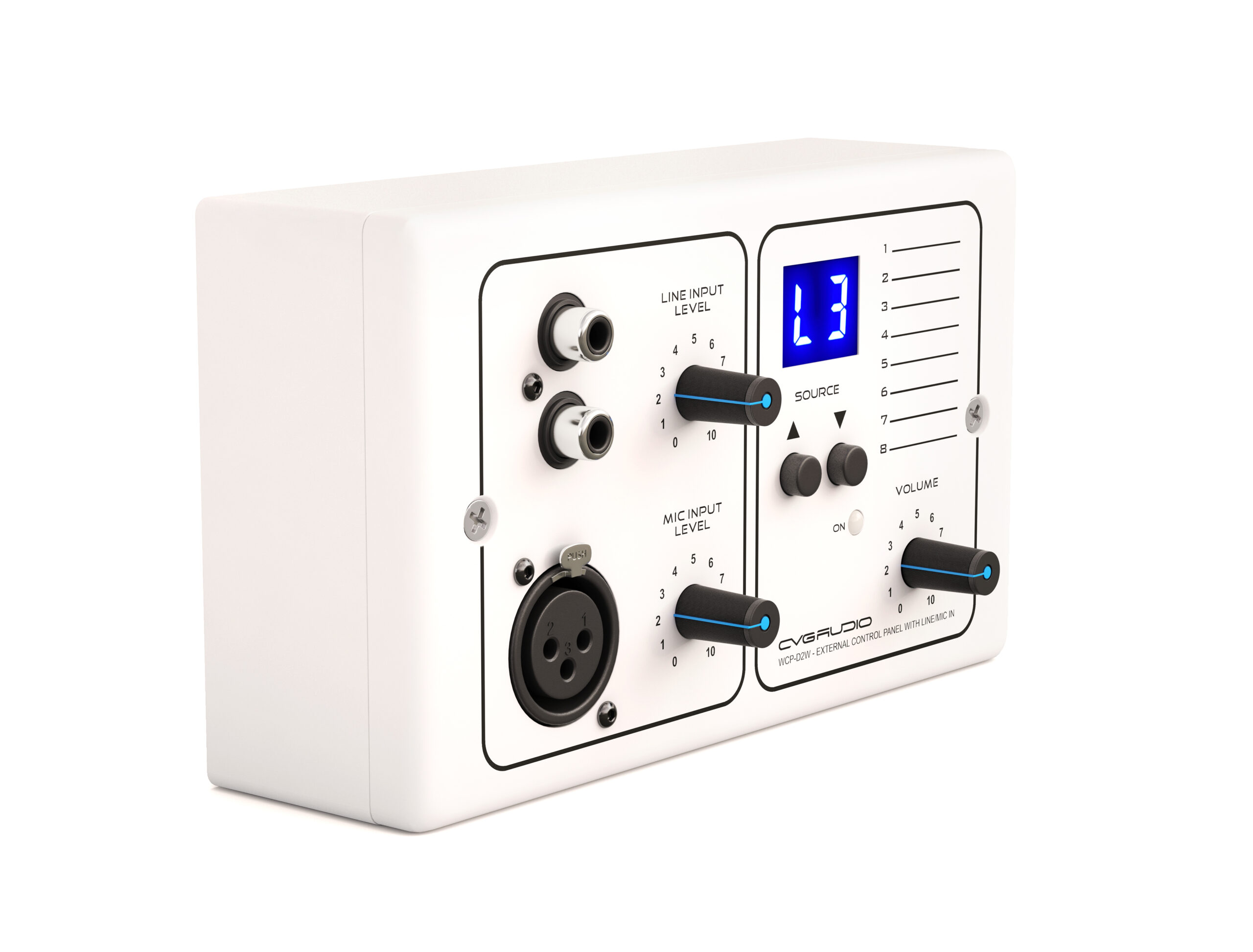 Настенный зональный удаленный контроллер управления CVGaudio PMM- 380 CAT5e/6 с линейным (2RCA) и микрофонным (XLR) входами, громкость, выбор входа, удаление 100m, белый пластик