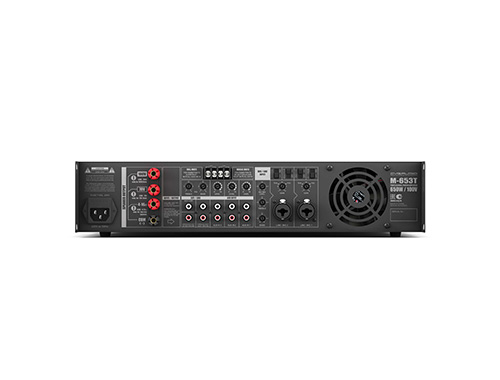 Профессиональный микшер-усилитель, 650W/100V, 3 line in (3x2RCA), 2 mic/line in (XLR/TRS), настраиваемый приоритет, фантомное питание 24V, FULL MUTE, MUSIC MUTE, раздельный EQ для линейных и микрофонных входов, 2U