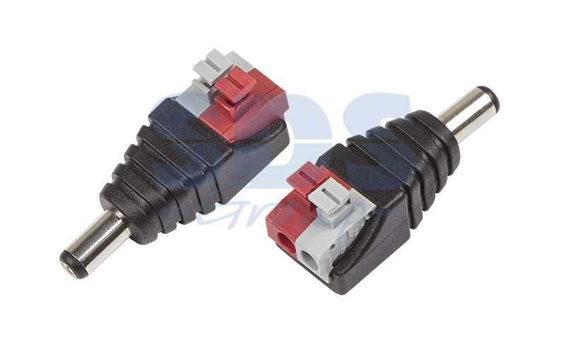 РАЗЪЁМ питания штекер 2.1х5.5 с быстрозажимной колодкой, предназначен для оперативного подключения питания различного оборудования (систем видеонаблюдения, питания зарядных или других бытовых устройств) к источнику питания постоянного тока 12/24В (DC). Такой двухконтактный штекер монтируется на кабель без использования какого-либо инструмента при помощи подпружиненных зажимов. Этот способ крепления значительно проще и быстрее, чем пайка, а его надежность и качество соединения остаются на неизменно высоком уровне. Никелевое покрытие контактов повышает долговечность разъема и позволяет применять его в условиях климатических перепадов. Разъем прямой формы имеет размеры 2.1х5.5мм.