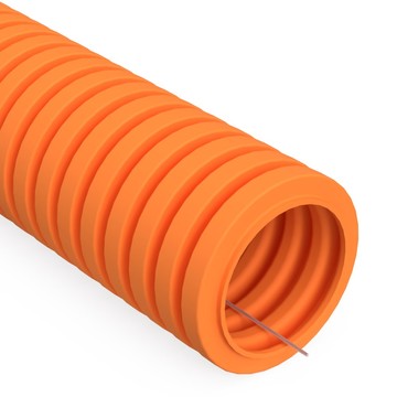 PR.025061 Труба гофрированная ПНД лёгкая 350 Н безгалогенная (HF) оранжевая с/з d50 мм (15м/660м уп/пал) Промрукав