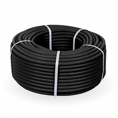 Труба гофрированная ПА негорючая (НГ) стойкая к ультрафиолету (УФ) чёрная с/з d40 мм (15м/960м уп/пал) Промрукав