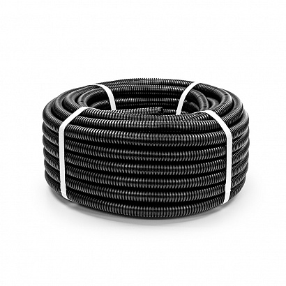 Труба гофрированная ПА негорючая (НГ) стойкая к ультрафиолету (УФ) чёрная с/з d20 мм (10м/2400м уп/пал) Промрукав