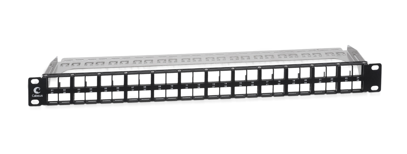Cabeus PLBHD-48-SH-1U Модульная патч-панель высокой плотности 19" (1U), 48 портов, для экранированных модулей, с задним кабельным организатором (без модулей)