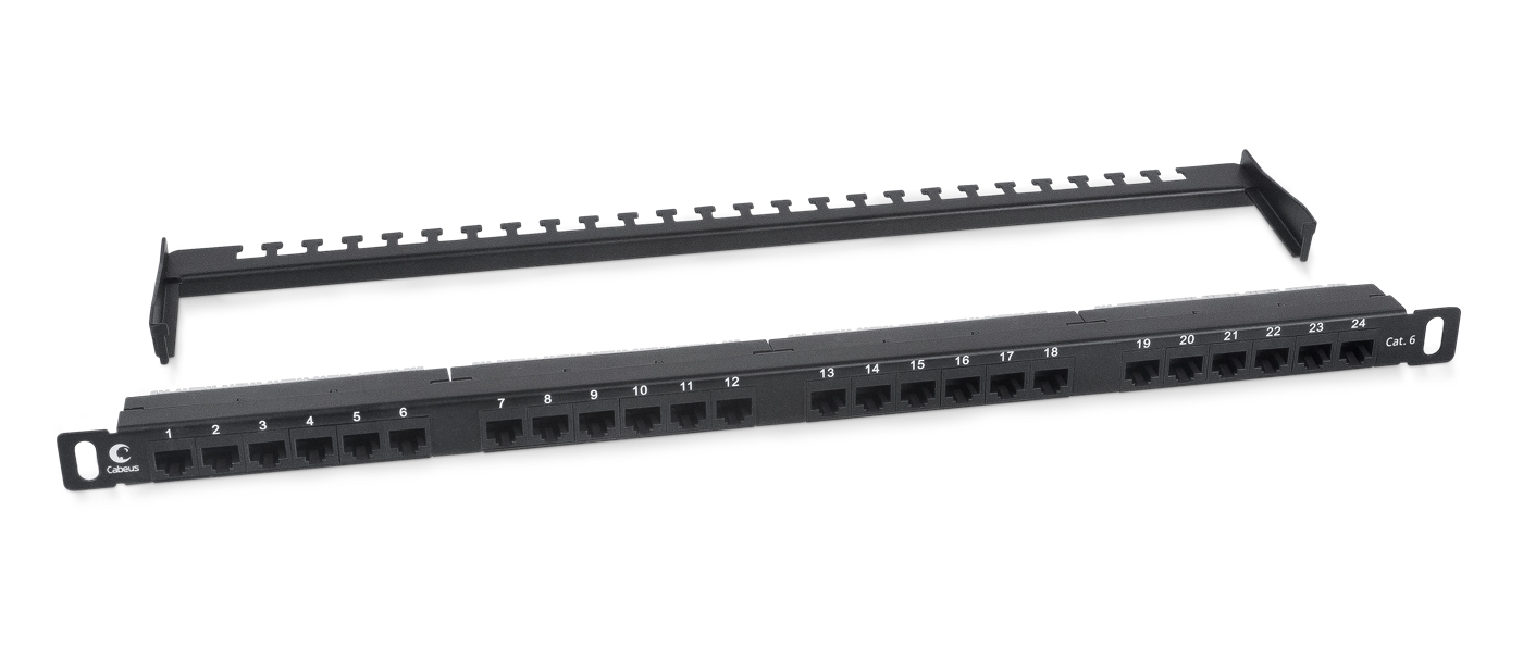 Cabeus PLHD-24-Cat.6-Dual-180-0,5U Патч-панель высокой плотности 19" (0,5U), 24 порта RJ-45, категория 6, Dual IDC,180 градусов, с задним кабельным организатором