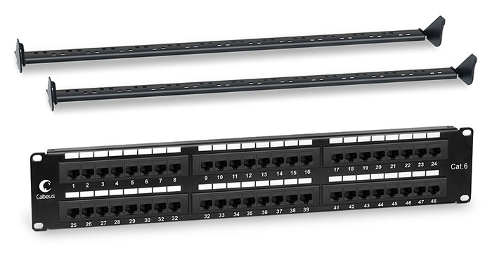 Cabeus PL-48-Cat.6-Dual IDC Патч-панель 19" (2U), 48 портов RJ-45, категория 6, Dual IDC, с задним кабельным организатором