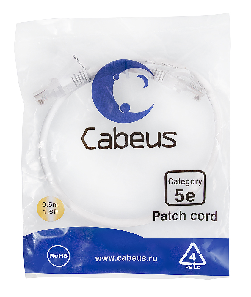 Cabeus PC-UTP-RJ45-Cat.5e-0.5m-WH-LSZH Патч-корд U/UTP, категория 5е, 2xRJ45/8p8c, неэкранированный, белый, LSZH, 0.5м