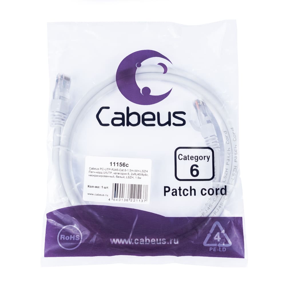 Для постоянных клиентов и партнеров цена Cabeus PC-UTP-RJ45-Cat.6-1.5m-WH-LSZH (11156c) корректируется в личном кабинете.