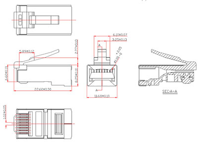 Cabeus 8P8C-SH-FC Коннектор RJ-45 быстрой установки под витую пару, категория 5e, экранированный, универсальный (для одножильного и многожильного кабеля) для проводников с толщиной по изоляции до 1,05 мм