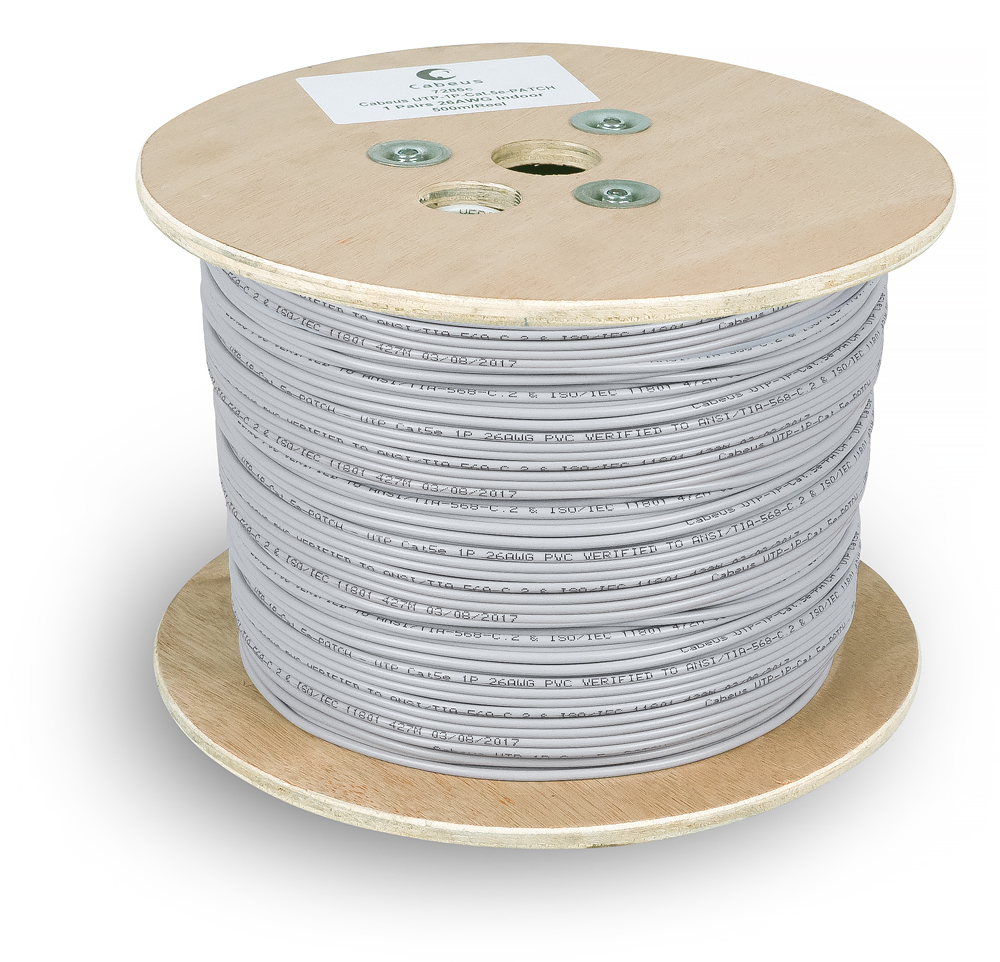 Cabeus UTP-1P-Cat.5e-PATCH Кабель витая пара (UTP), категория 5e, 1 пара (26 AWG), многожильный (patсh), PVC нг(А)-LS, серый (500 м)