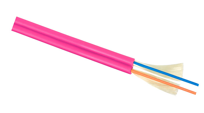 Cabeus TB-ZIP-7-02T-LSZH-IN-25 Кабель волоконно-оптический 50/125 (OM4) многомодовый, 2 волокна, плотное буферное покрытие (tight buffer), zip cord, для внутренней прокладки ( -25C ~ +50), LSZH, маджента RAL 4010