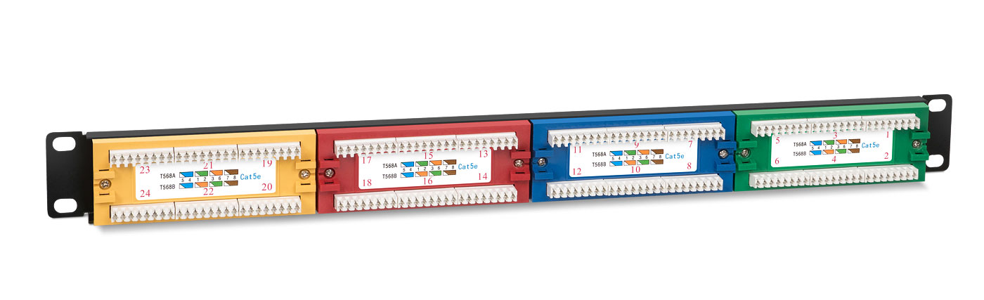 Cabeus PLCOL-24-Cat.5e-Dual IDC Патч-панель 19" (1U), 24 порта RJ-45, категория 5e, Dual IDC, угол портов 45 градусов, цветные блоки