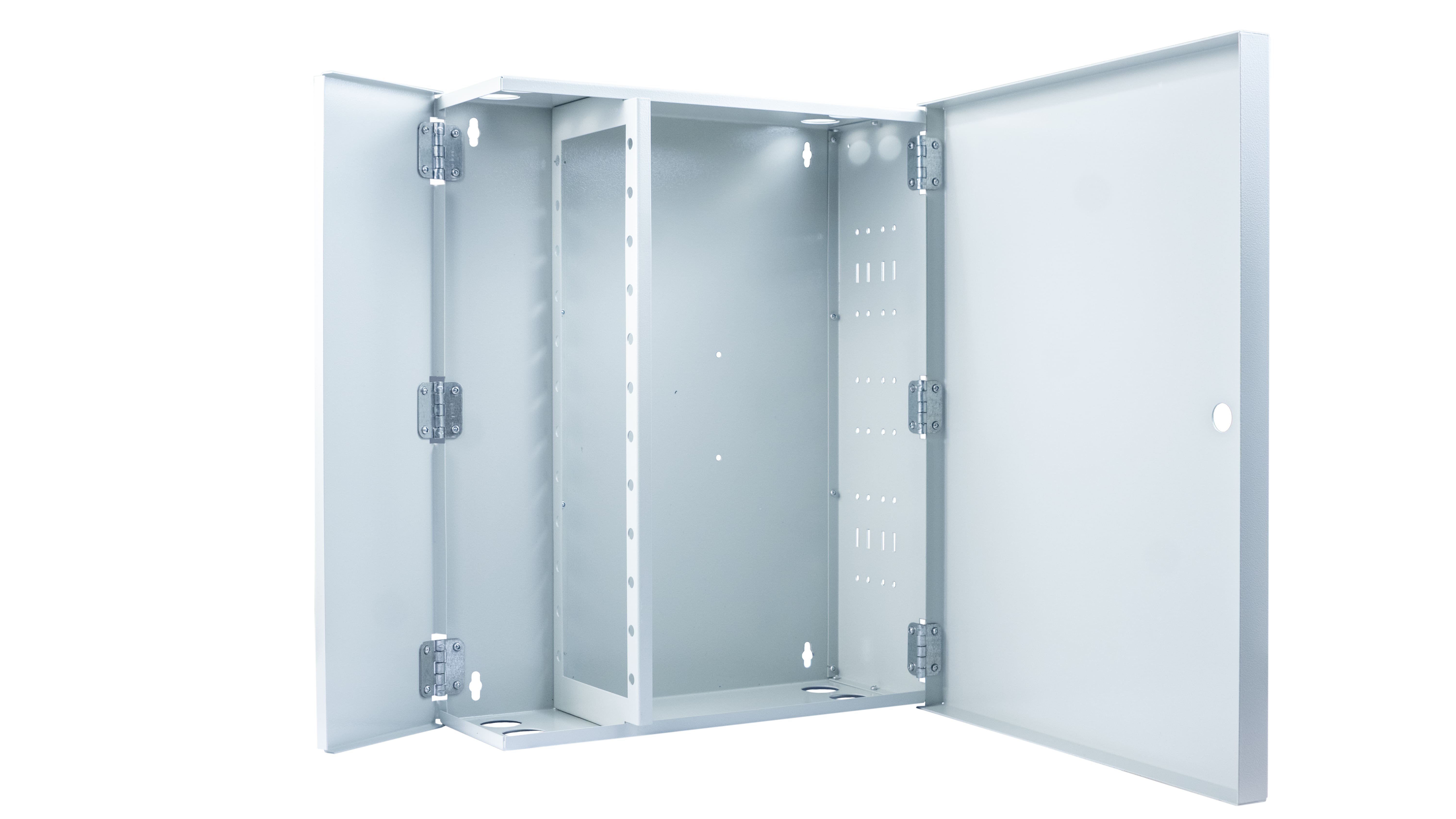 Cabeus FO-WL-64/96-SC/2LC/FC/ST-FP-K Кросс оптический настенный частично укомплектованный 64/96 портов SC/LC duplex/FC/ST (Планка SC/2LC-12 шт, планка FC/ST-12шт, планка-заглушка-4шт, сплайс-кассета-6шт, крышка для ску -1шт) серый RAL 7035