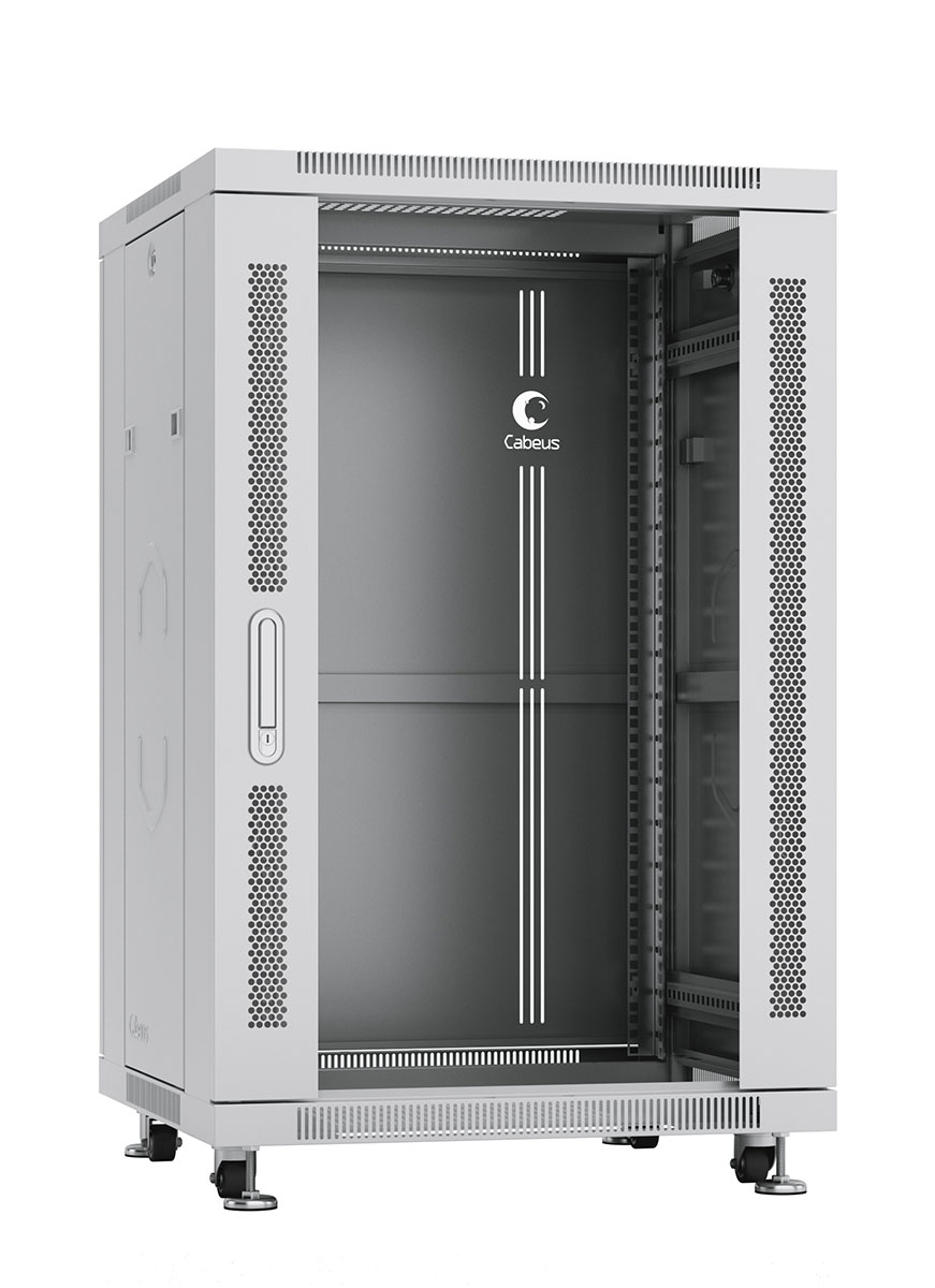 Cabeus SH-05C-18U60/60 Шкаф монтажный телекоммуникационный 19" напольный для распределительного и серверного оборудования 18U 600x600x988mm (ШхГхВ) передняя стеклянная и задняя сплошная металлическая двери, ручка с замком, цвет серый (RAL 7035)