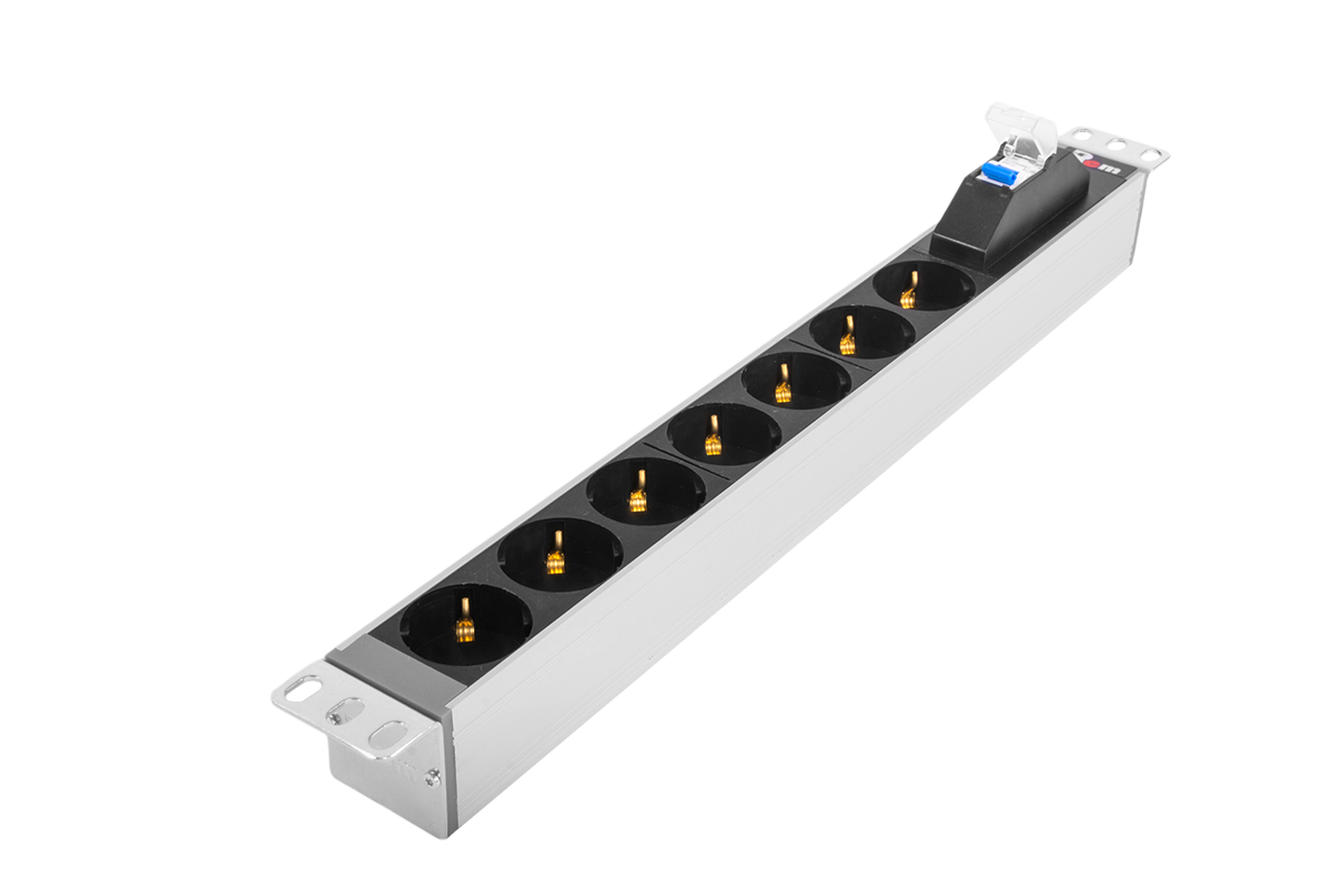 Блок розеток Rem-16 с авт. 16А, 7 Shuko, алюм., 19", колодка