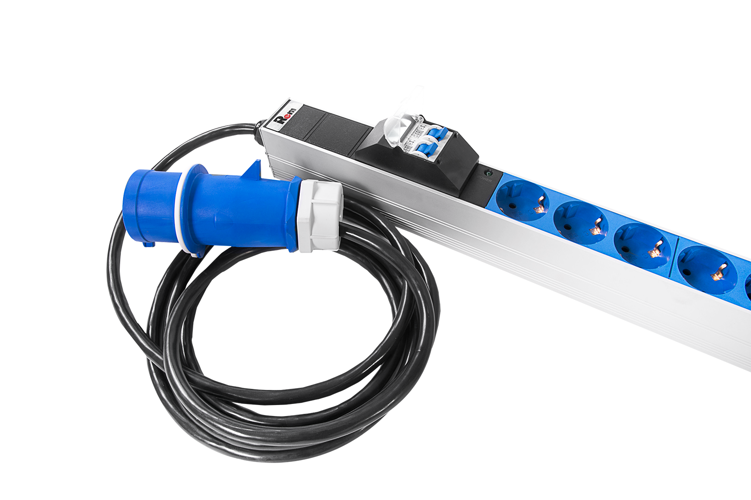 Вертикальный блок розеток Rem-32, 1 фаза 32A, 2 авт, инд, 10 S, 24 C13, 4 C19, 1820 мм, вх IEC 309, шнур 3 м