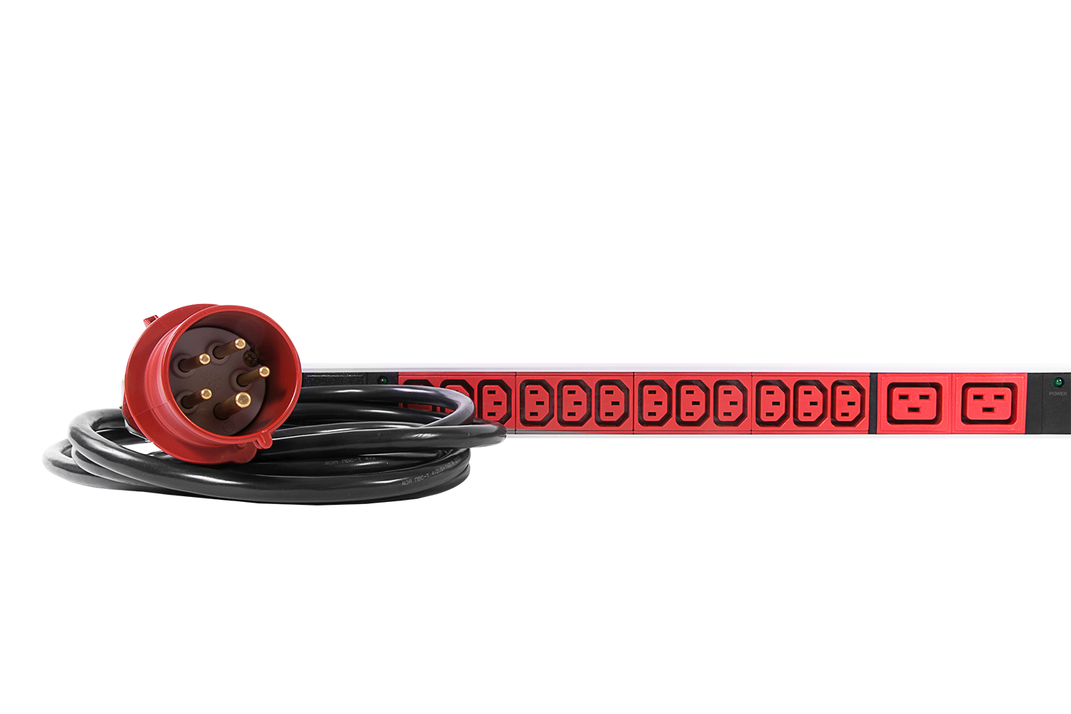 Вертикальный блок розеток, мониторинг, измерение, 3 фазы 16А, 36C13, 6C19, 1820 мм, вх IEC 309, шнур 3м