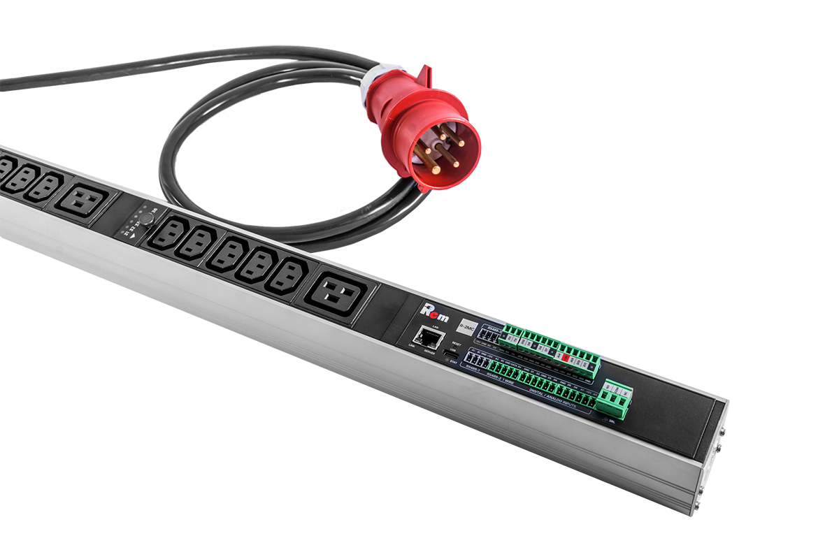 Вертикальный блок розеток Rem-2MC,LINUX,мониторинг,измерение,1~32А,авт,20S,1420мм,вхIEC309,шнур 3м