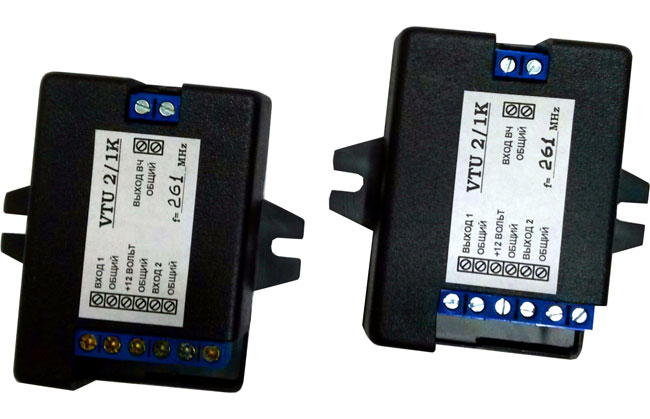 Однако на практике встречается отдельный класс задач, когда система видеонаблюдения строится в условиях нехватки сигнальных и питающих линий. Такая ситуация возникает при реконструкции старых систем, в случае изменения проекта в процессе монтажа, или в результате допущенных ошибок при проектировании. И хотя проблема носит локальный характер, отсутствие возможности проложить дополнительный кабель делает уплотнитель видеосигнала VTU-2/1 незаменимым устройством. В состав уплотнителя VTU-2/1 входят два блока, подключаемые на передающем и приемном концах кабельной линии, являющиеся модулятором и демодулятором соответственно (вместе сокращенно-МОДЕМ). Являясь двухканальным устройством передачи, модем VTU-2/1 позволяет передавать по одному коаксиальному кабелю либо-два видеосигнала, либо – один видео и один аудиосигнал, либо видеосигнал и питающее напряжение 12 вольт.